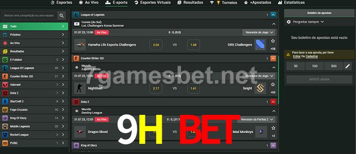 O 9H Bet oferece uma grande seleção de opções de apostas em e-sports com probabilidades competitivas